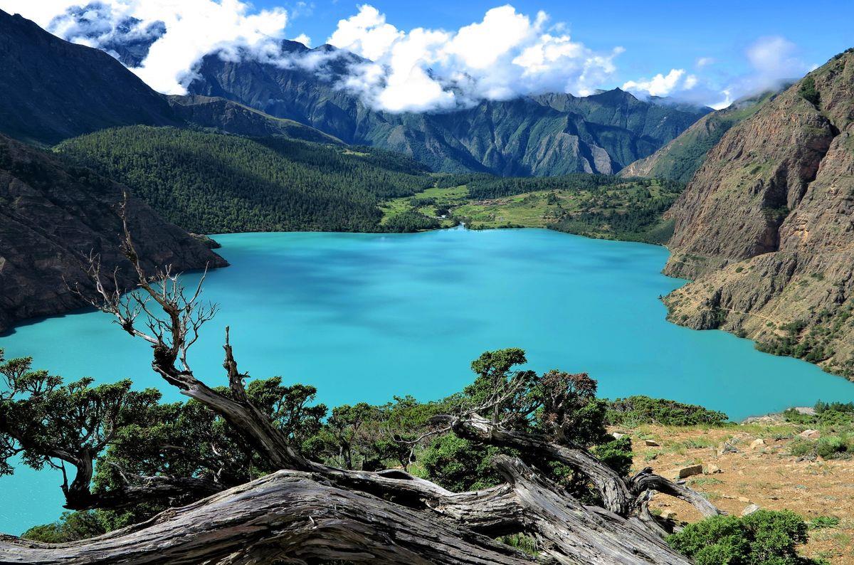 徒步旅行者位于Dolpo的偏远地区,可以通过参观Phoksundo湖欣赏尼泊尔更多的自然风光。该湖是尼泊尔最深的湖泊,湖水清澈见底,没有任何水生生物的迹象。