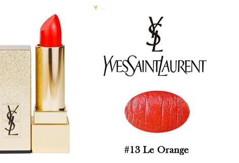 方管13号就是一只很正很正的橘红色,而且很明显的体现了YSL家唇部产品的一个特点:上嘴时间越久越容易偏红~对于黄皮的亚洲肤色来说,它很不挑皮!然后,也很显白。