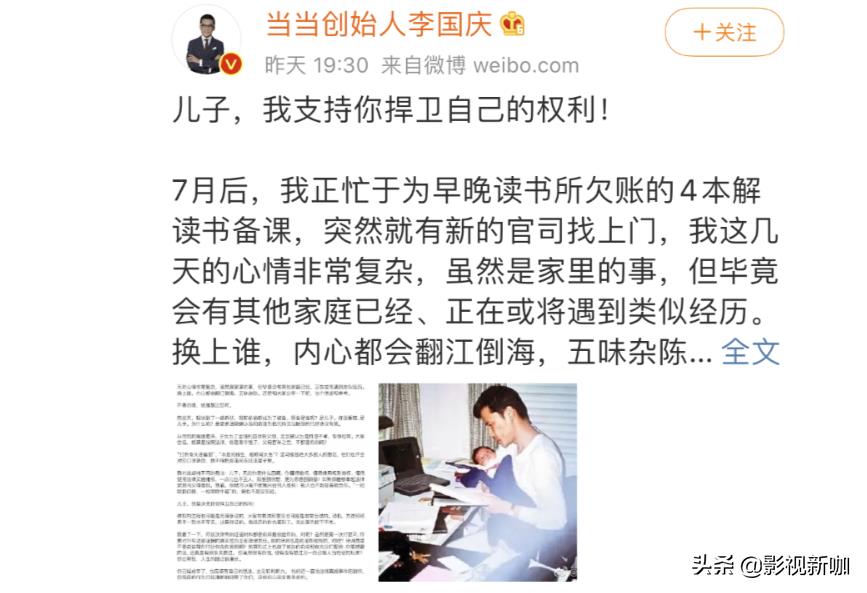 8月11日,李国庆和俞渝夫妇被自己的亲儿子一纸诉讼告上了法庭,李国庆迅速在微博上发长文做出反应,千字长文字里行间都是对儿子的爱护。