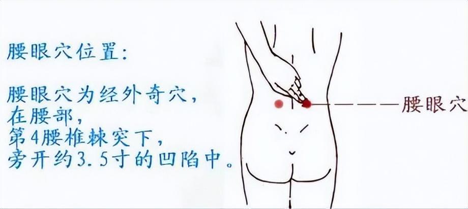 4.将大拇指分别按于两侧腰眼处,用力挤压,并旋转揉按,先顺时针,后逆时针,各36圈。