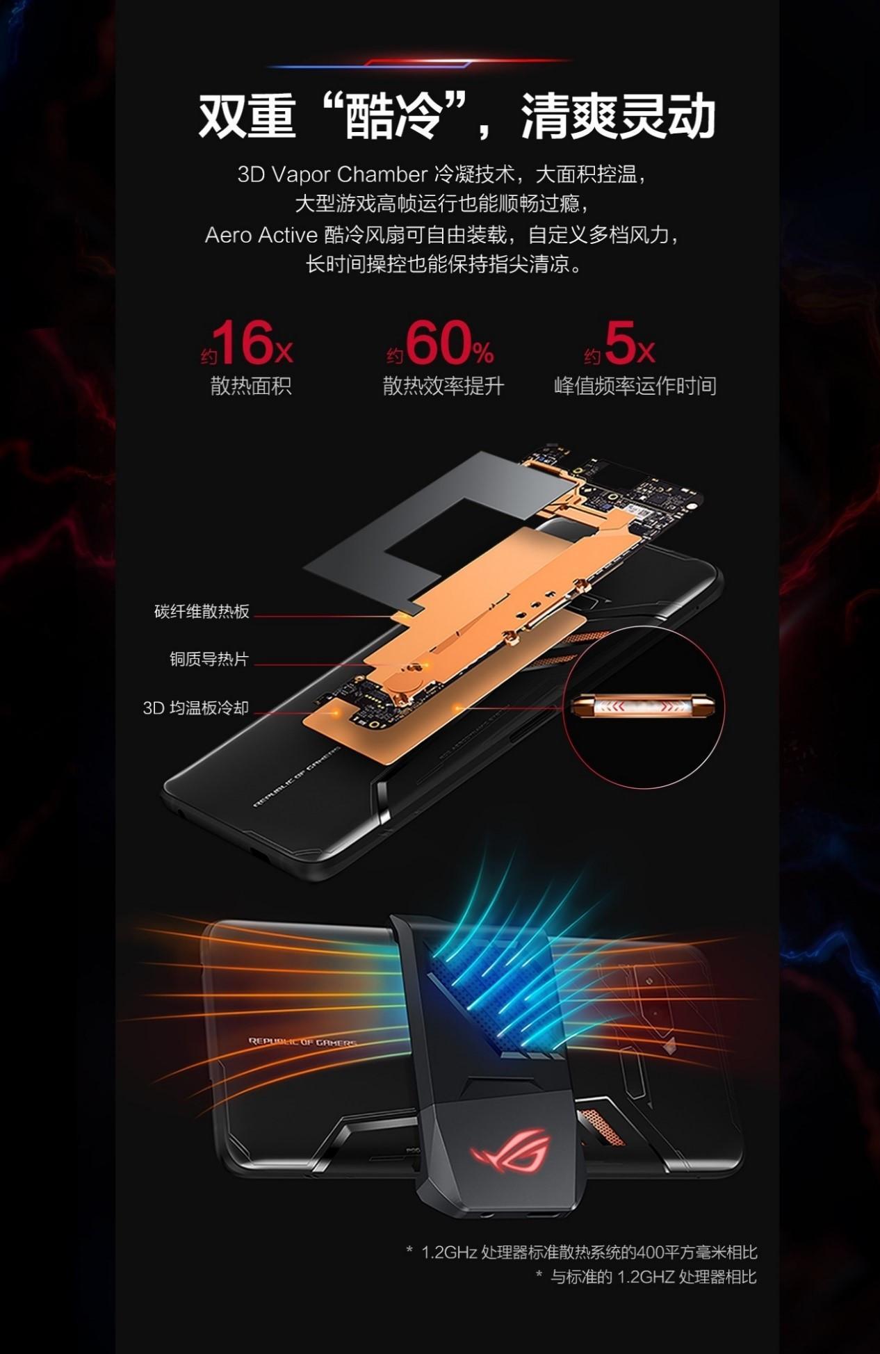 ROG游戏手机首先在硬件配置上满足了电竞游戏的尖端需求。采用超频高通骁龙845处理器,主频最高可达2.96GHz,性能处于安卓阵营的顶尖水平。同时,ROG游戏手机采用3D Vapor Chamber冷凝+Aero Active风扇双重酷冷散热模式,独特的散热系统成为高通骁龙845持续高频运行的坚实后盾,称得上是一款强大的“游戏神机”。