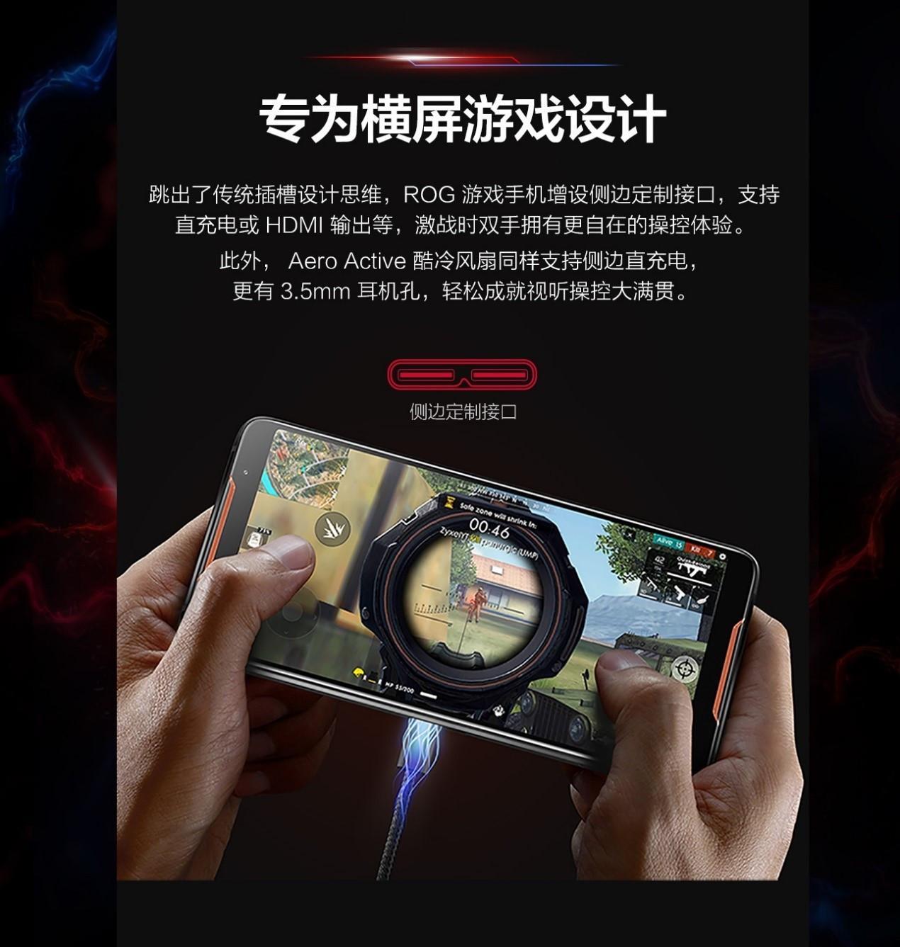 在外形上,ROG游戏手机采用流行元素金属中框加前后双面玻璃材质,加上ROG标志性的“玩家国度”LOGO信仰呼吸灯,Gaming元素十足。同时,在结构设计上ROG游戏手机专门为横屏游戏设计做了优化,为玩家定制了侧置式Type-C插口,改善玩家游戏体验。