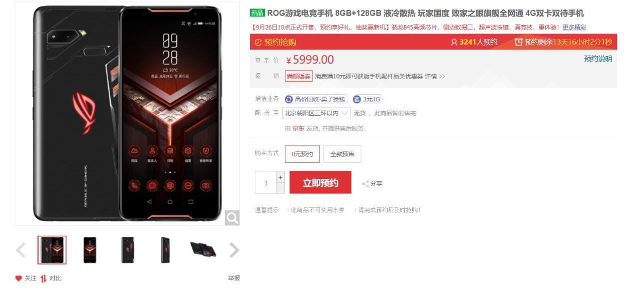 京东成为ROG手机中国大陆地区独家代理。目前,ROG游戏手机已在京东商城正式开启预约,并将于9月26日正式开售,售价5999元。