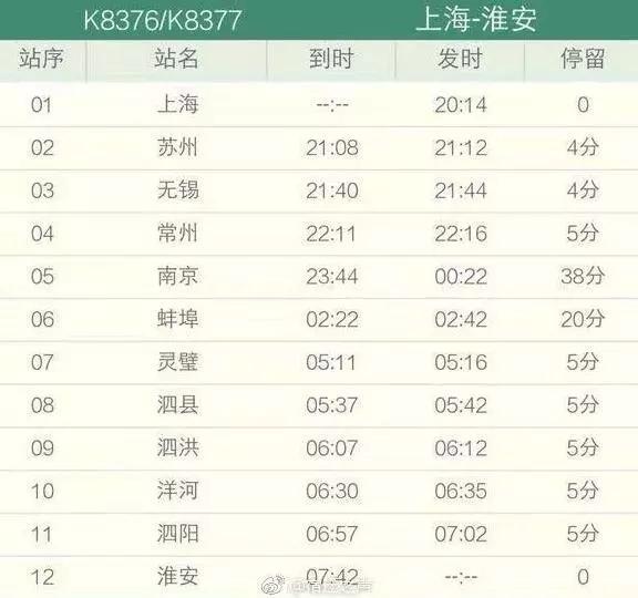 这次,淮安到上海开行的是普速列车。沪淮快速列车自淮安始发,途经宿迁泗阳、洋河、泗洪、蚌埠、南京、南京、常州、无锡、苏州,最后抵达上海站。列车全程大约11个小时。