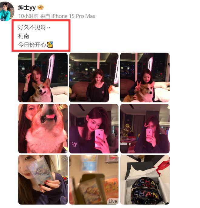 小羽在王思聪的豪宅内,抱着王思聪的狗狗柯南亲昵的合影,配文:好久不见呀,柯南,今日很开心!