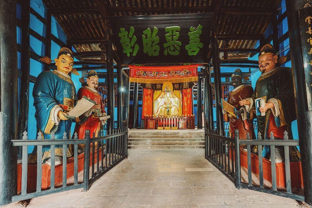 丰都内鬼城仿阳间司法体系,营造了一个等级森严,融逮捕、羁押、庭审、判决、教化功能为一体的“阴曹地府”,以惩治生前作奸犯科者,遂使海内外善男信女们进山朝拜,或祈求神灵庇佑,或自我反省忏悔。虽阎王判官小鬼之传说虚妄,但其惩恶扬善的社会教化功用又为人们所称道。
