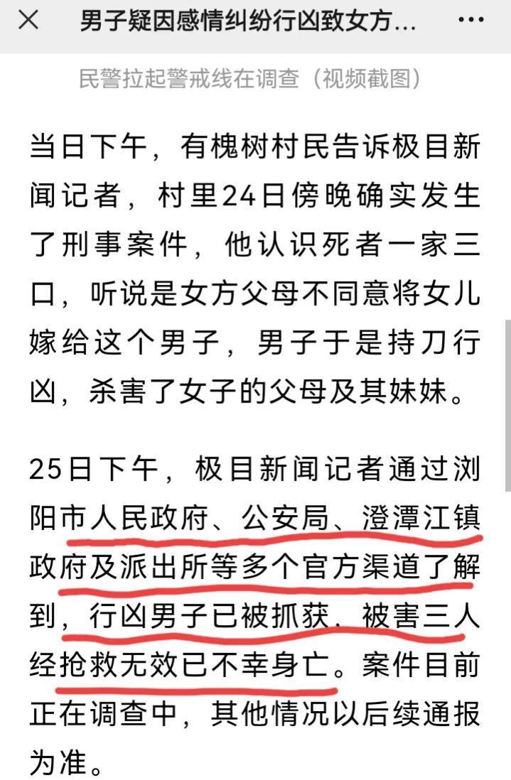 湖南浏阳男子感情纠纷,杀害女子父母和妹妹,疑似受害人亲属发声。