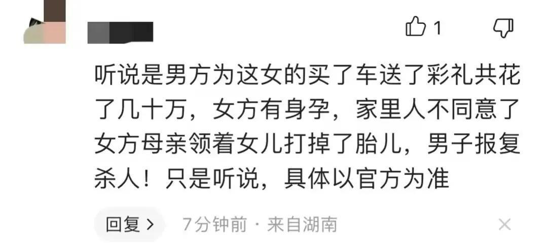 一湖南Ip的网民言:男方为女子买车送了彩礼,花了几十万,女方有身孕,家人不同意,打掉了胎儿,男子报复。