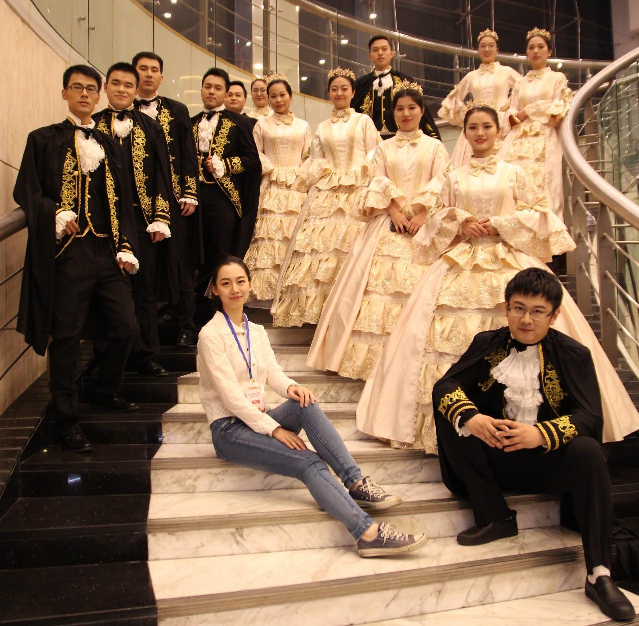 然而,文艺社的小伙伴是优秀的,他们顶住了压力,最后在汇报演出的时候,一个个穿起了精美宫廷服装,