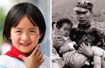 北川县曲山镇幼儿园的郎铮小朋友被解放军官兵救出后向救援人员敬礼,被称为“敬礼娃娃”