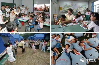 志愿者们为地震灾区儿童开展各种形式的心理康复训练
