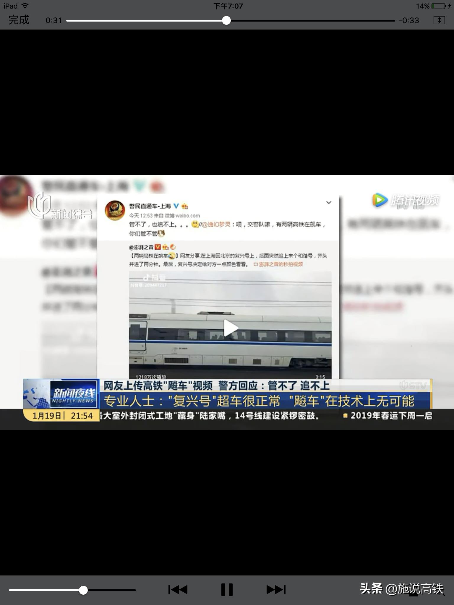 所以不能通过此视频就断定“复兴号”列车时速比“和谐号”列车快,这显然是不科学的。
