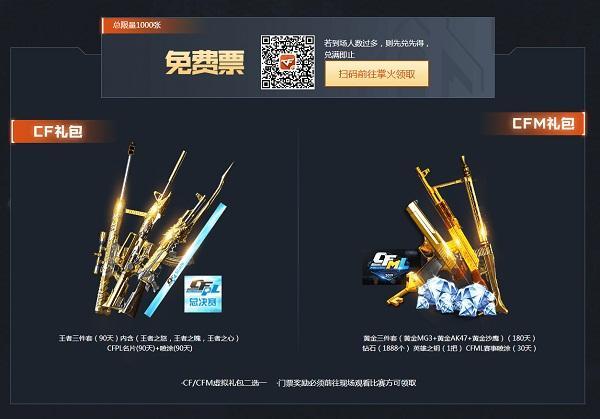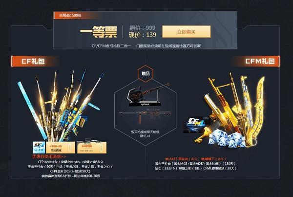 3.每张门票都包括CF/CFM虚拟礼包,但CF/CFM虚拟礼包只能二选一,且门票奖励必须通过前往现场观看比赛方可领取。连续观看CFPL+CFML总决赛的观众将会额外获得18888CF点或者1888钻石。