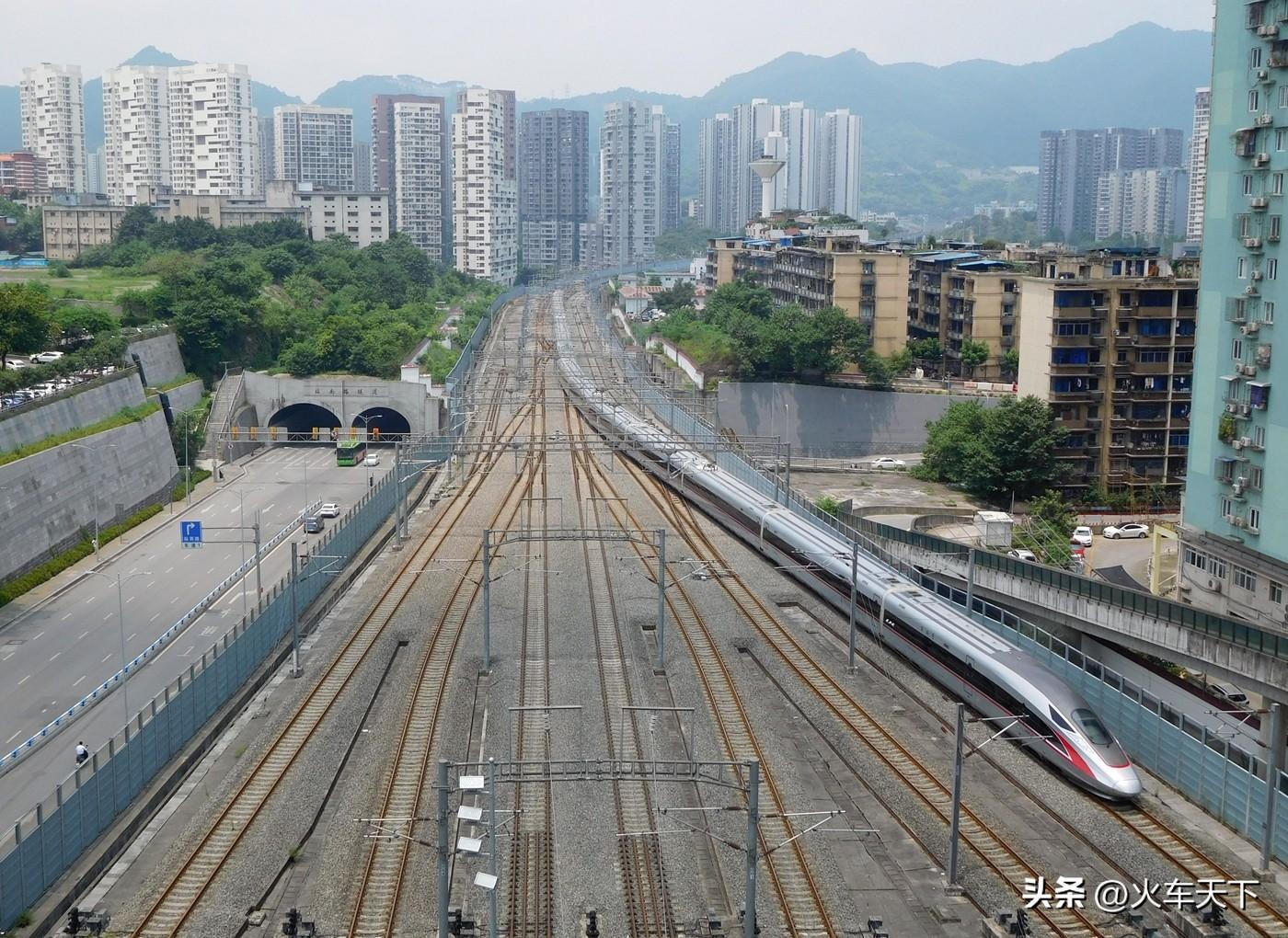 2009年,当成都经遂宁到重庆开行时速200公里的和谐号动车组的时候,另一条连接成渝间的快捷通道——成渝高铁也即将开工建设,成渝高铁从成都经资阳、内江到重庆,大部分路段与老成渝铁路平行,但是和弯弯曲曲的老成渝线相比,成渝高铁线路更直标准更高,按照350公里时速标准修建,全线里程也比老成渝铁路短了200公里,这也是四川盆地第一条时速达到350公里的高铁线路。