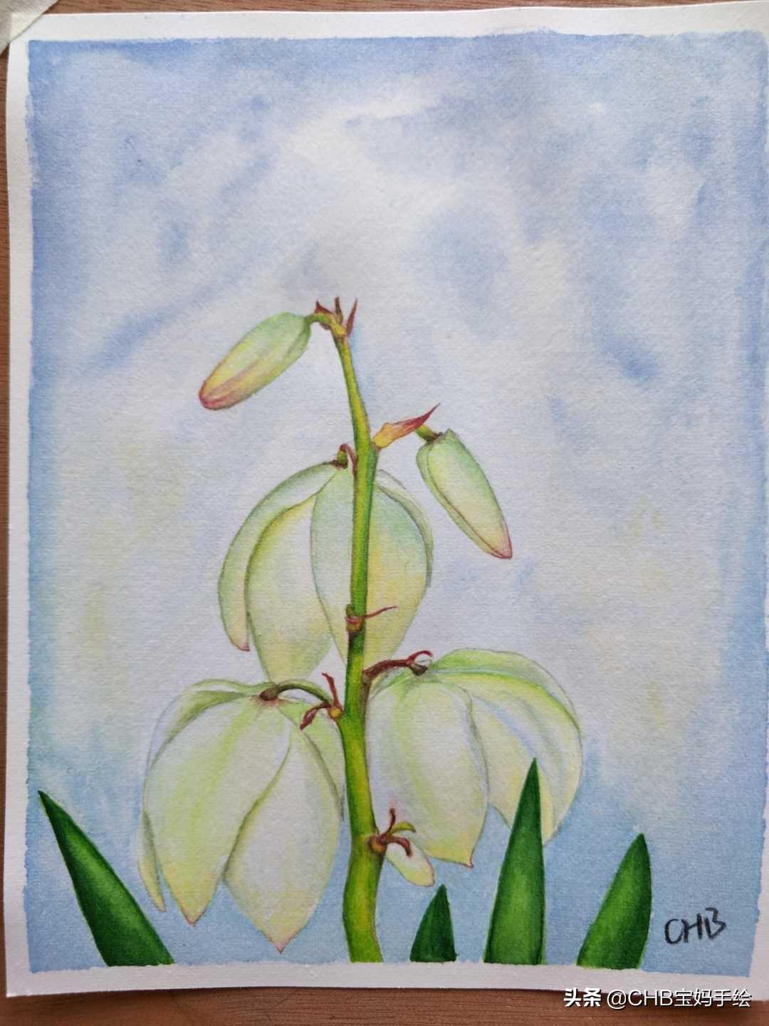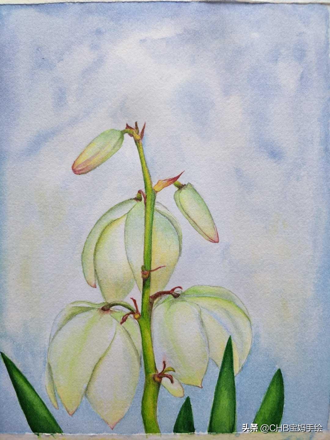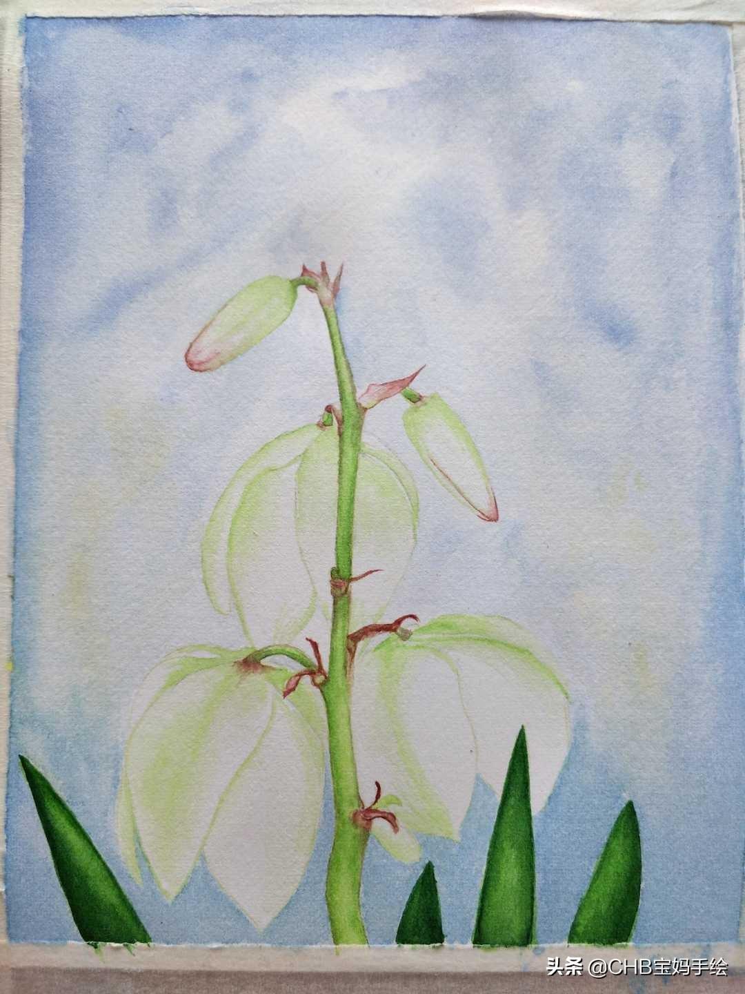 零基础学画画:水彩剑麻花手绘过程