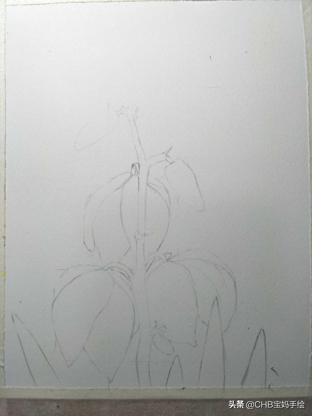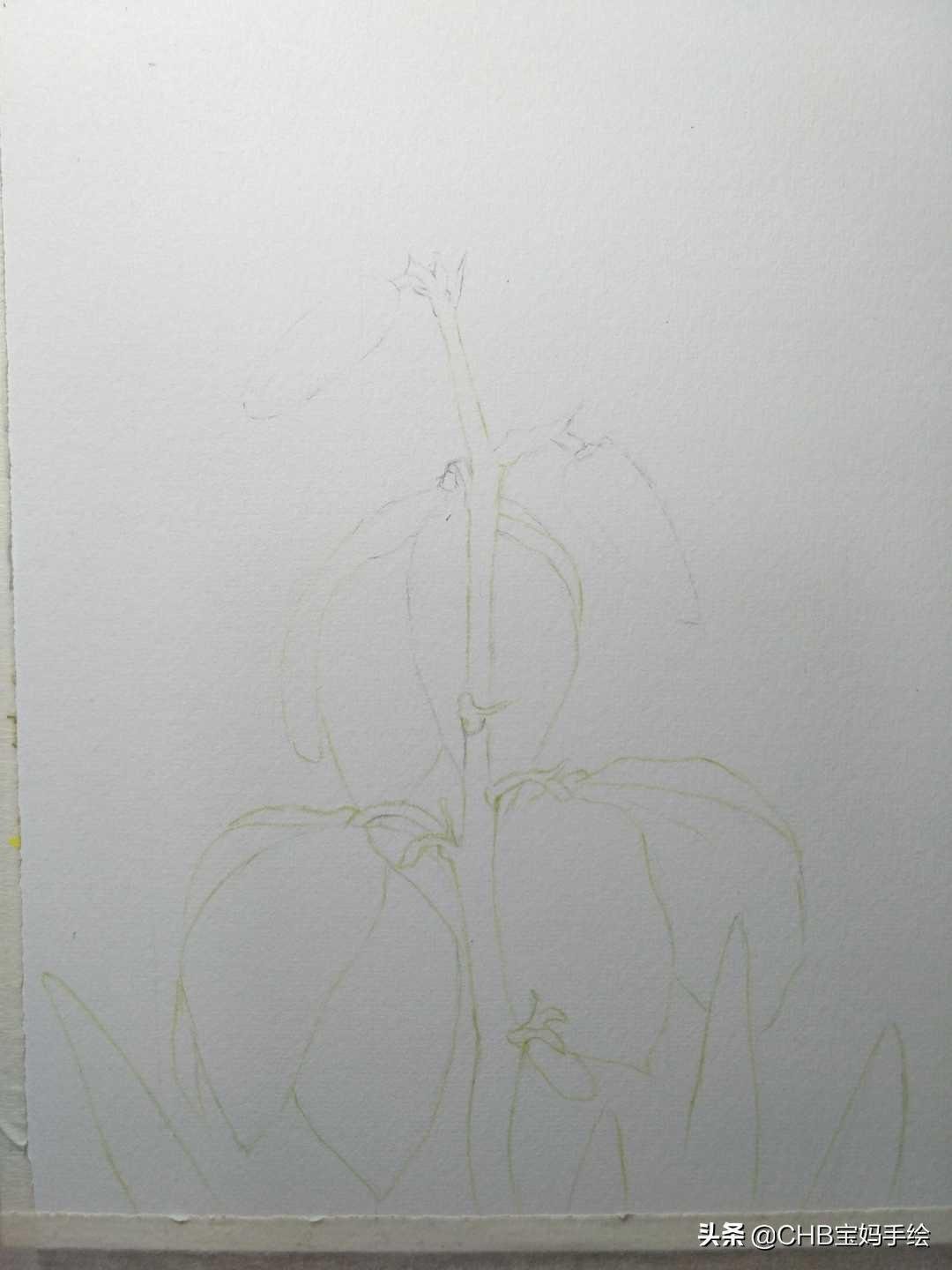2,用草绿色水溶性彩铅画出它的彩色线稿。