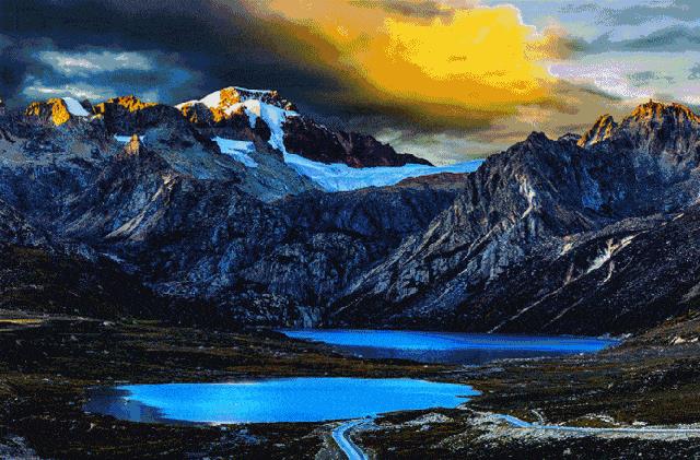 高山、大地、湖泊、阳光