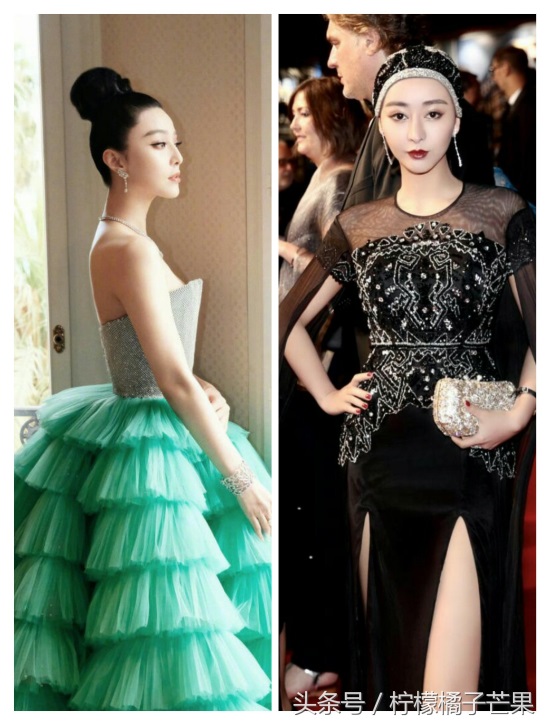 还有走红毯的。左边的是真的范冰冰,右边的是高仿的。有人说全身照高仿范冰冰的比真的范冰冰还好看。