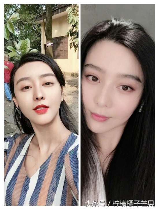最先被当做整容模板的就是范冰冰了,范冰冰颜值高,在娱乐圈知名度也高,所以何承熹用了八年时间整成了范冰冰。这张自拍照你看得出来吗?右边的是真范冰冰,左边的是模仿的。