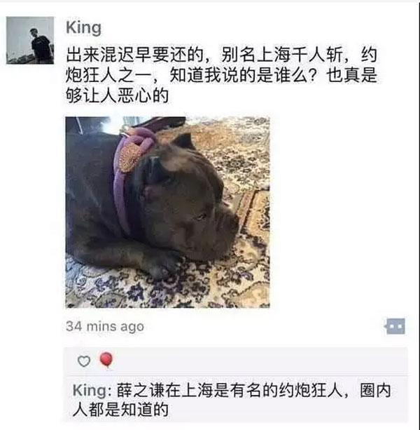 网传还有一张富二代秦奋吐槽薛之谦的微信截图,他说薛之谦是上海千人斩。不过这张截图不知真假。