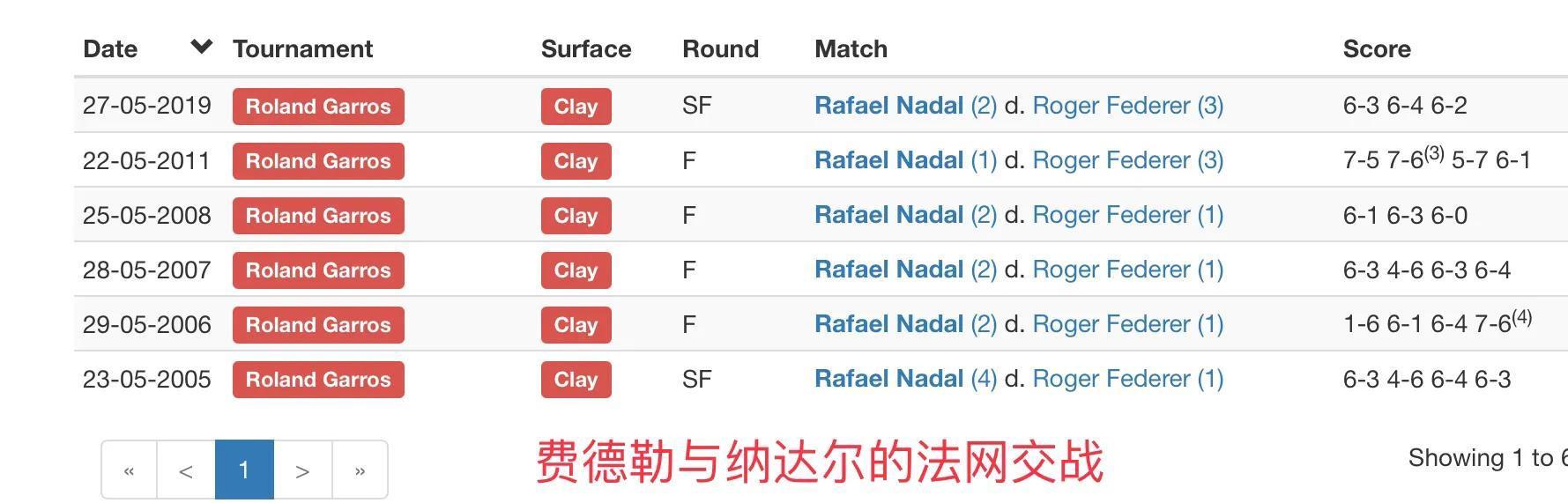数据不会说谎。费德勒在法网仅仅赢得一个冠军,关键原因就是纳达尔,绝对的一胜难求。