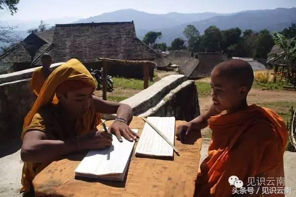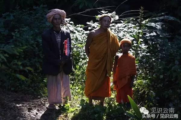 掸族与布朗族同样信仰佛教。下图为布朗族和尚和村民。