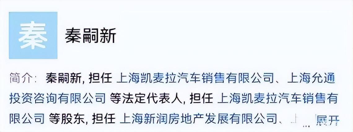 而关于秦奋的父亲秦嗣新也是首次被曝光,原来“沪上皇”是香港人。根据秦奋父亲的公开信息显示,其居住在香港跑马地,并且在上海有着多家公司,应该是最早从香港到上海投资的一批港台富商。