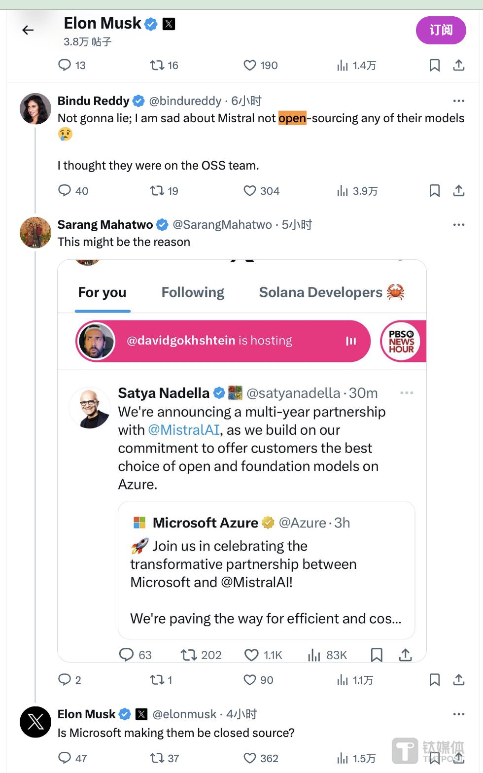 OpenAI失宠了?微软投资法国开源 AI 独角兽Mistral,马斯克对微软表达不满