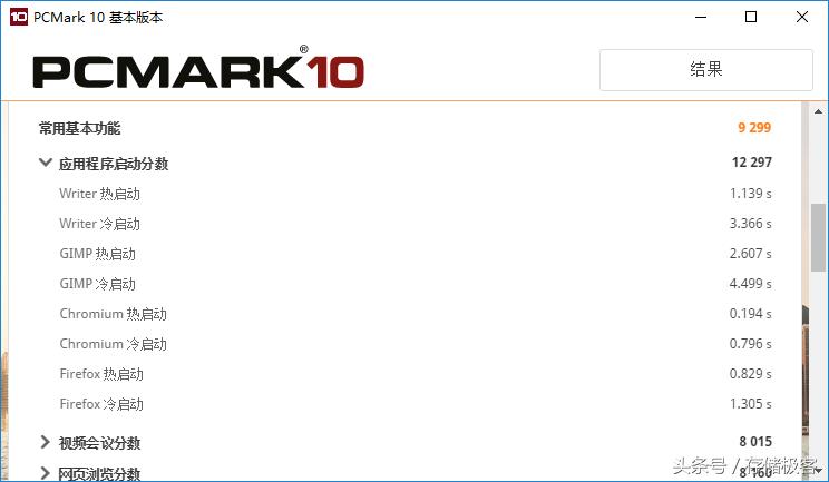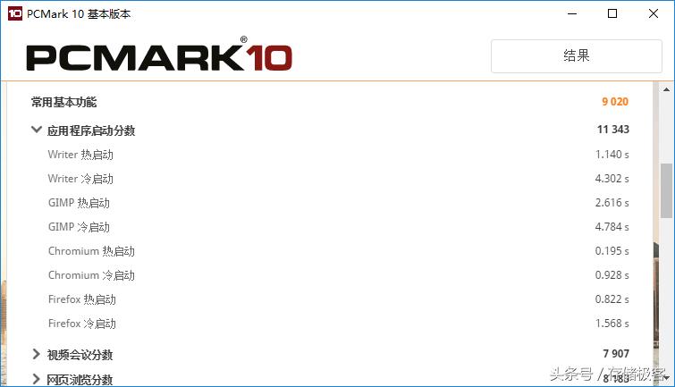 新版PC Mark 10中没了单独的存储测试,不过加入了应用程序启动时间测试作为弥补。相比靠感觉和掐表算都要准确的多。TLC闪存的东芝Q300测试成绩如下: