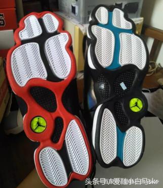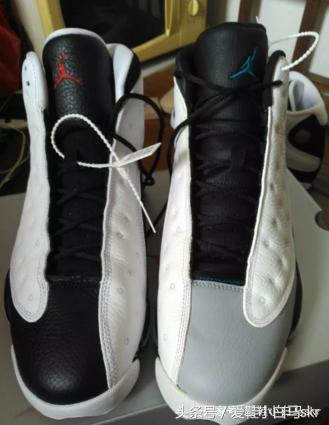 下图的两个,左边是AJ13熊猫,右边是AJ13伯爵;配色和鞋舌的logo一致,还是很好区分的