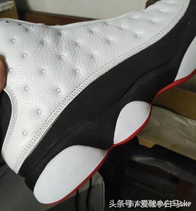 下图,左aj13熊猫,右aj13伯爵 ,整体看上去有两个位置的不同,一是鞋舌logo的配色,aj13熊猫是红色的;还就是鞋头的颜色,aj13伯爵是灰色的,aj13熊猫是黑色