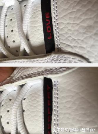 还有鞋头位置,aj13熊猫有一个Jordan的标志,AJ13爱与尊重是love&respect作为特色。二者放在一起区别还是很明显的。