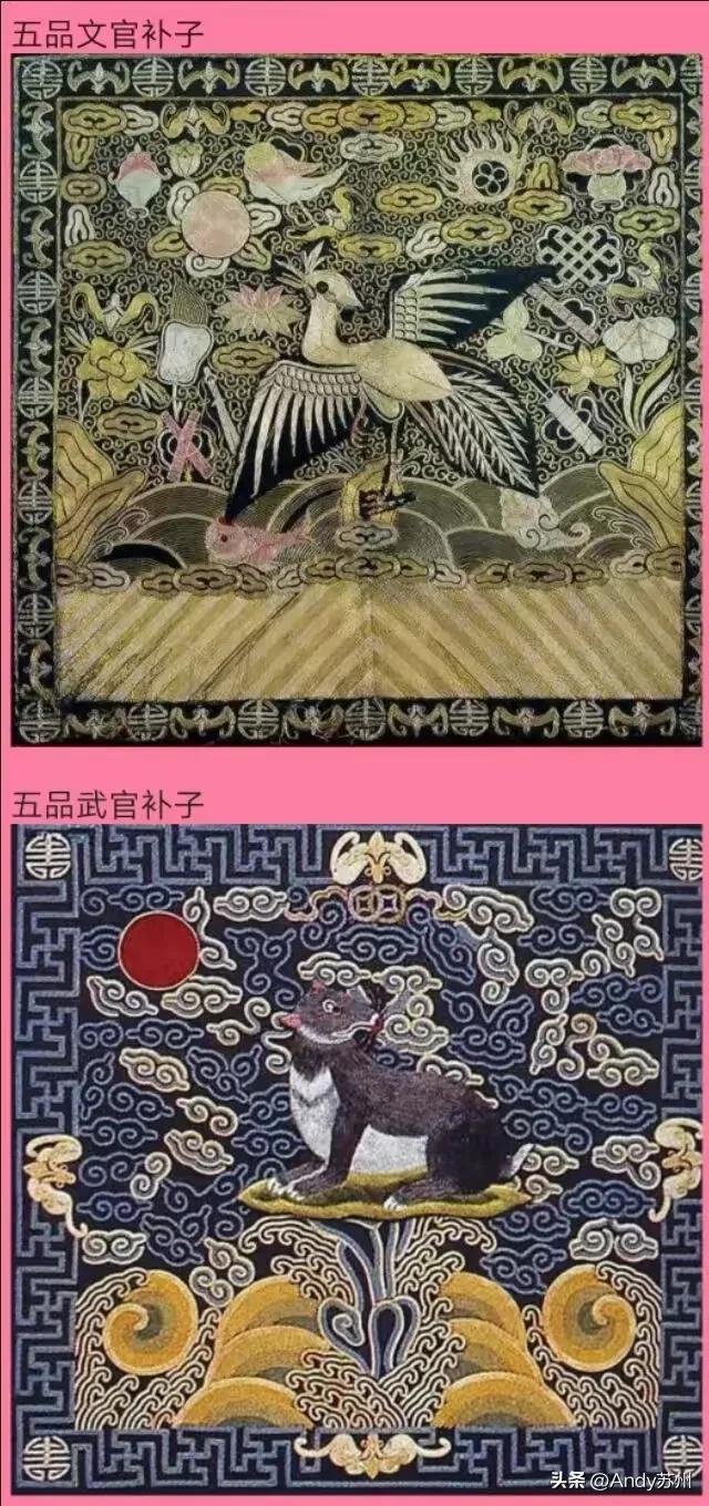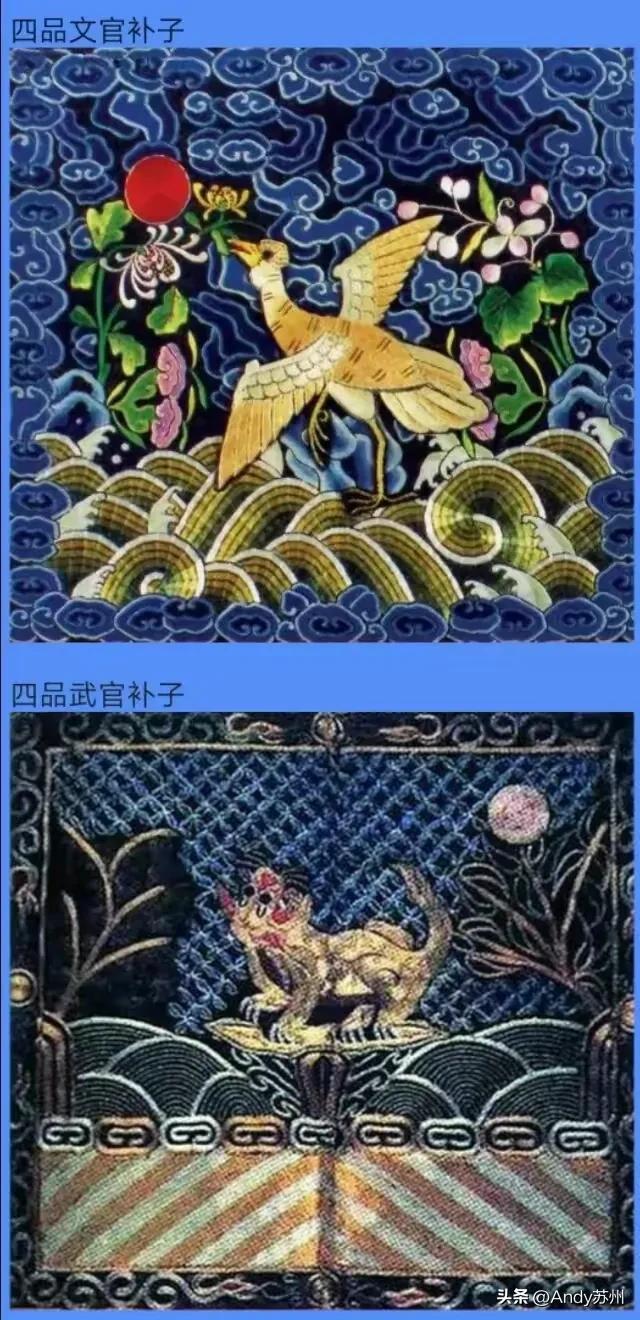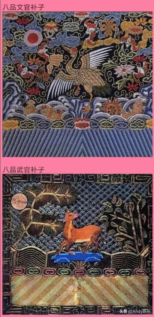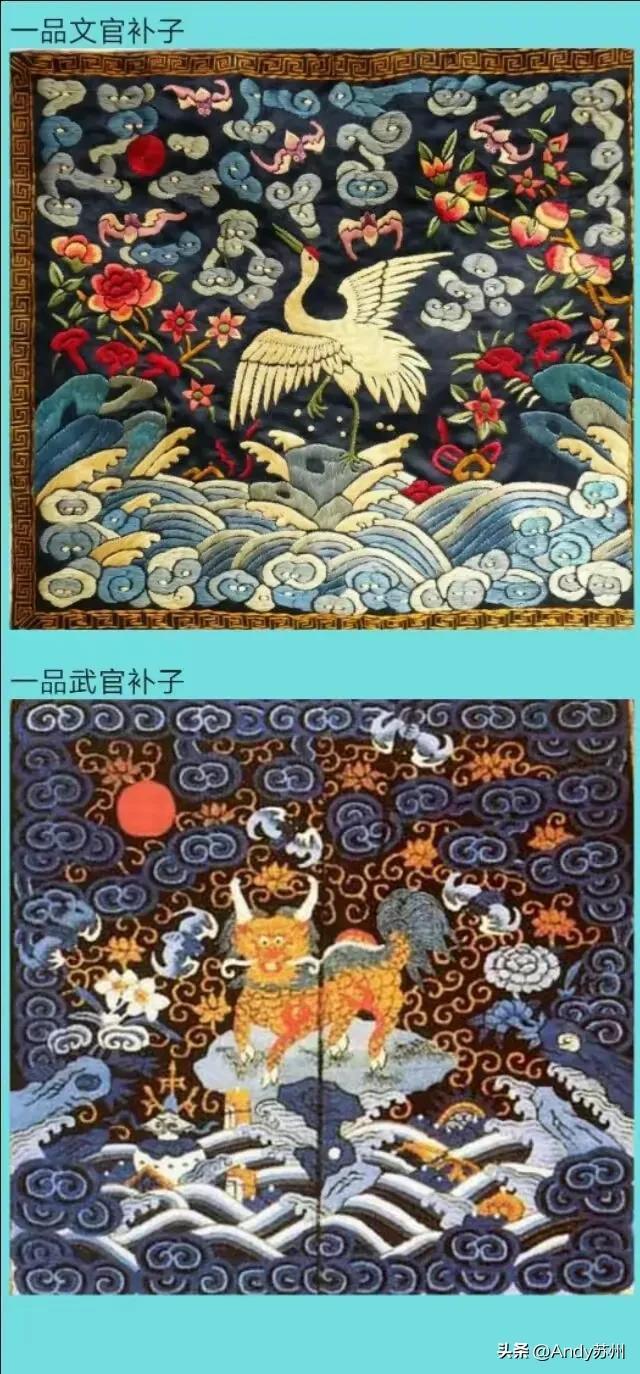 清朝官员的胸前和后背都有不同图案的补子,用来区分官职大小。