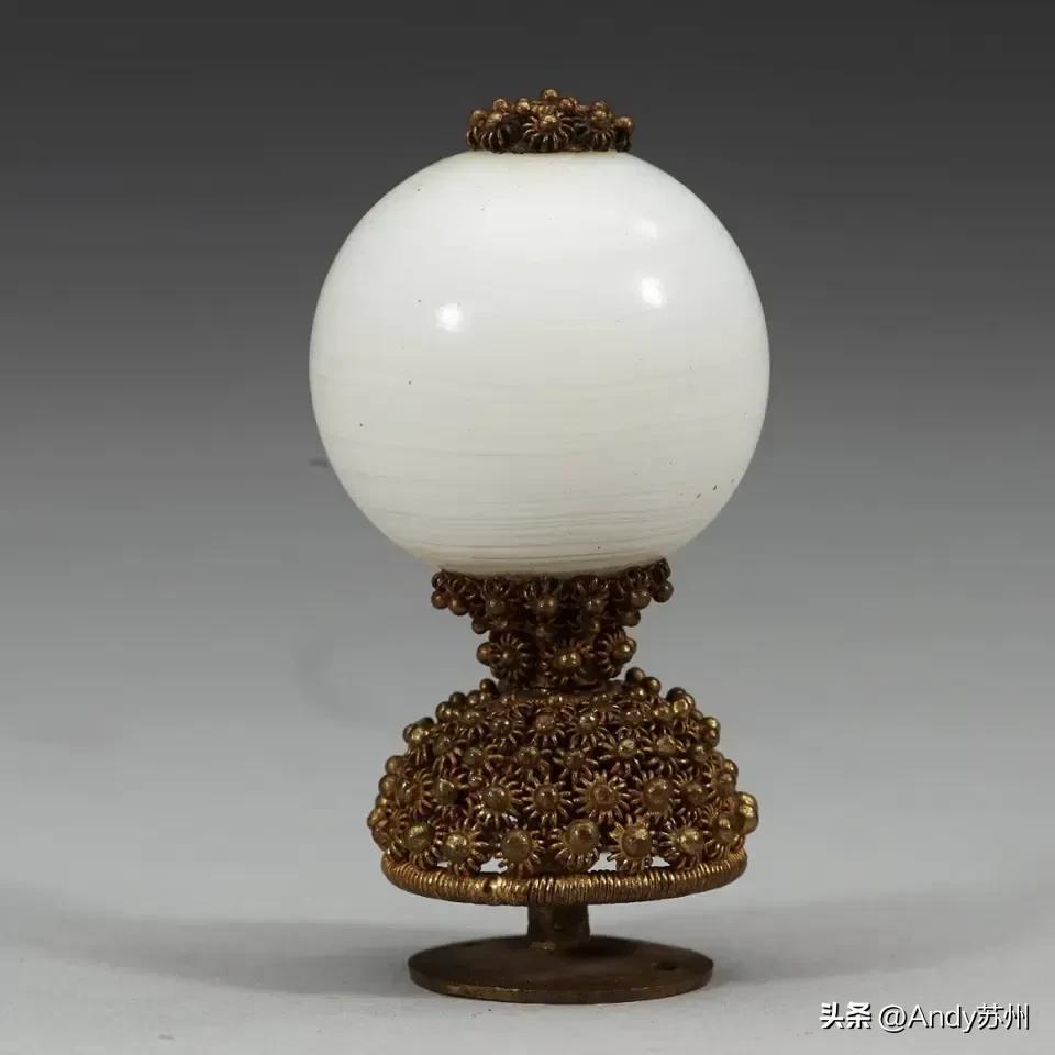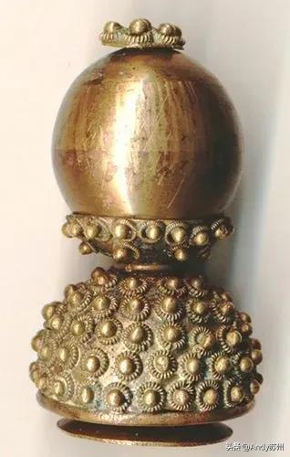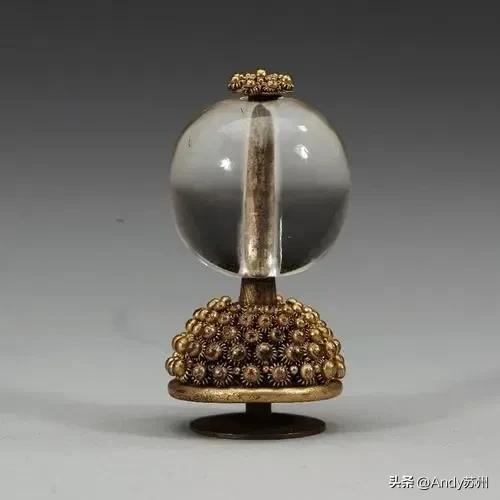 注意看,八品和七品都是素金顶,区别是七品的顶珠是光滑无纹的,而八品则有凹状图案花纹。