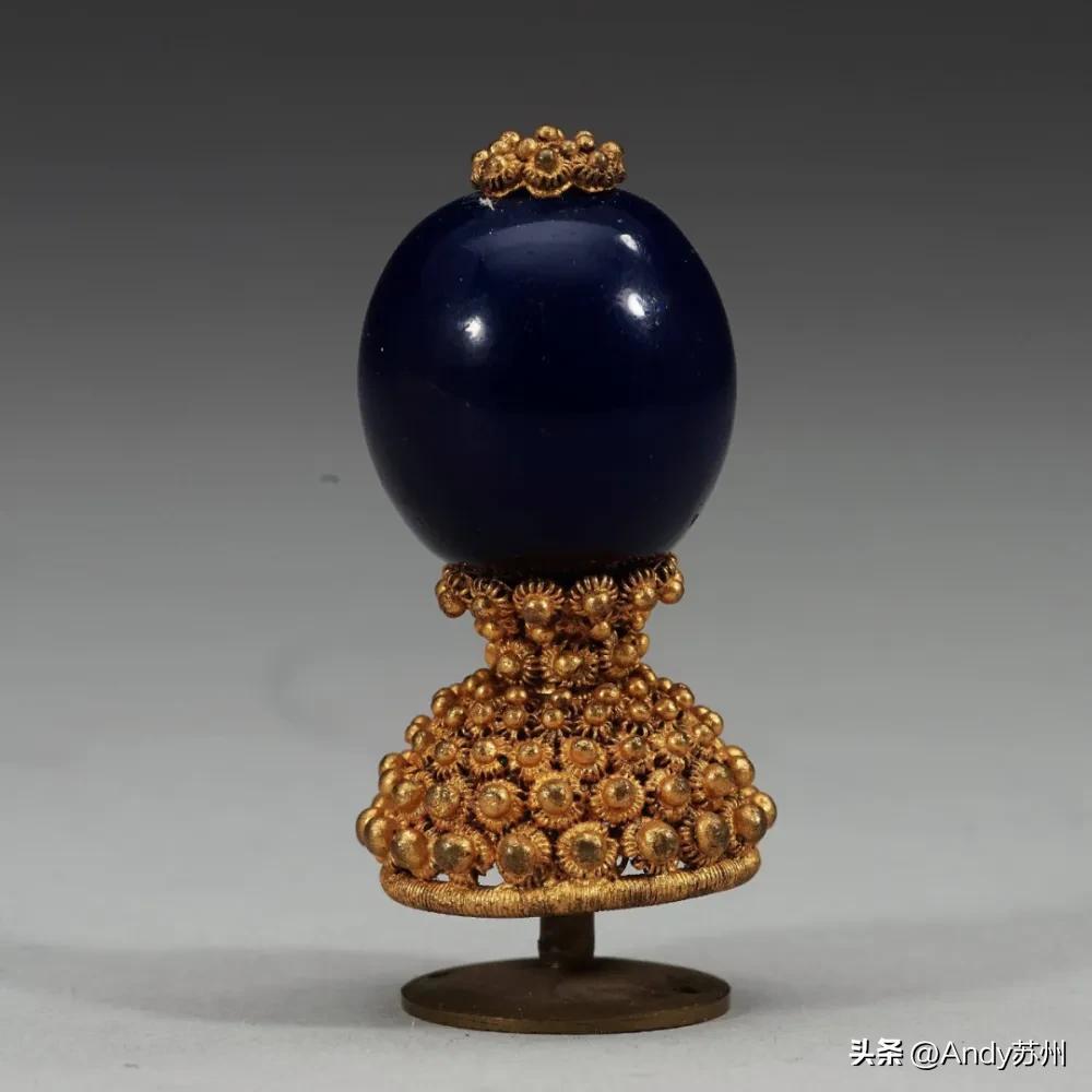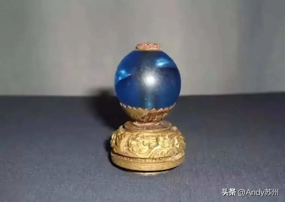 四品官顶戴上饰小蓝宝石,上衔青金石。