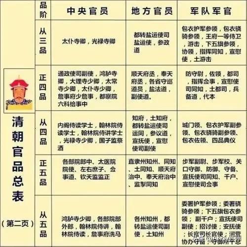 清朝的官员等级分为九品十八级,每一品都有正副之分,每一品级的文武官员的朝服和顶戴都不相同。从正一品到从九品的官员朝服及顶戴配置如下: