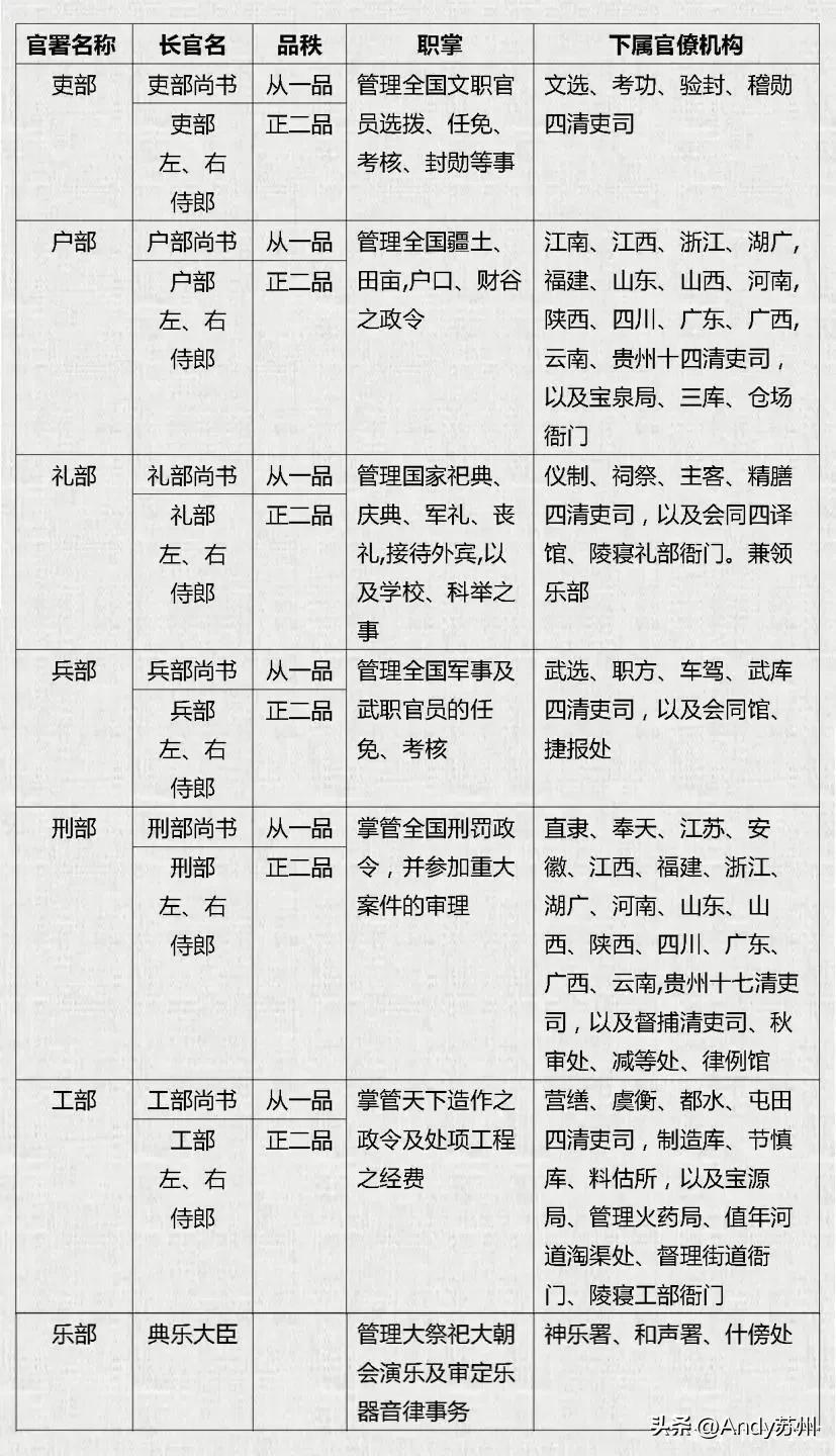 吏部(天官)>户部(地官)>礼部(春官)>兵部(夏官)>刑部(秋官)>工部(冬官)