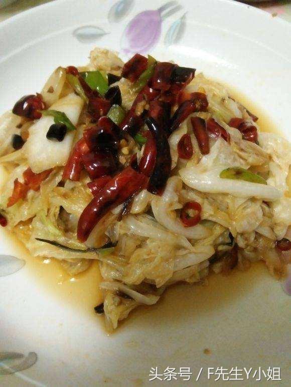 原料:圆白菜1/4棵,干辣椒3个,新鲜红辣椒3个,大蒜1瓣,料酒1大勺,白醋1大勺,白糖1小勺,盐少许。