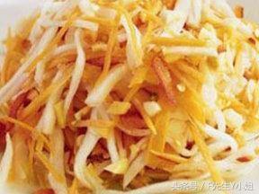1、白菜、胡萝卜洗净修好切细丝,葱切丝。