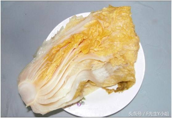 1.大白菜切一块头部,然后水里放油盐,焯好,要时间长一点,把白菜焯倒了。