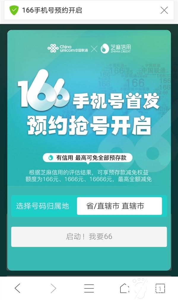 1.近日中国联通与芝麻信用合作推出166段号首发活动,是凭芝麻信用分来给的评估结果,部分靓号将免预存费直接办理。