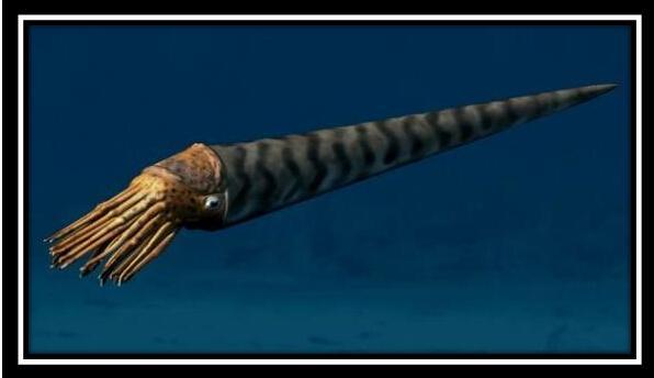 直壳鹦鹉螺是现代卷壳鹦鹉螺的近亲,它的整体外形像一个梭子,体长可达6到8米,是一种强悍的水生生物。拥有强力的喷水结构,可以通过喷水快速前进,捕捉猎物。当迅速靠近猎物时,再通过触手抓捕。它是奥陶纪晚期的海洋霸主。