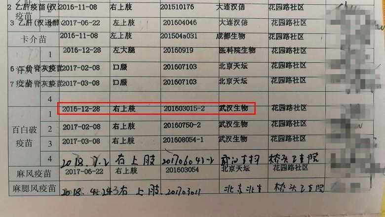 据了解,目前排查出效价指标不合格的百白破疫苗批号以及涉及的企业分别为:长春长生生物科技有限公司生产的批号为201605014-01的百白破疫苗,流向了山东省;武汉生物制品研究所有限责任公司生产的批号为201607050-2的百白破疫苗,流向了河北省、重庆市。
