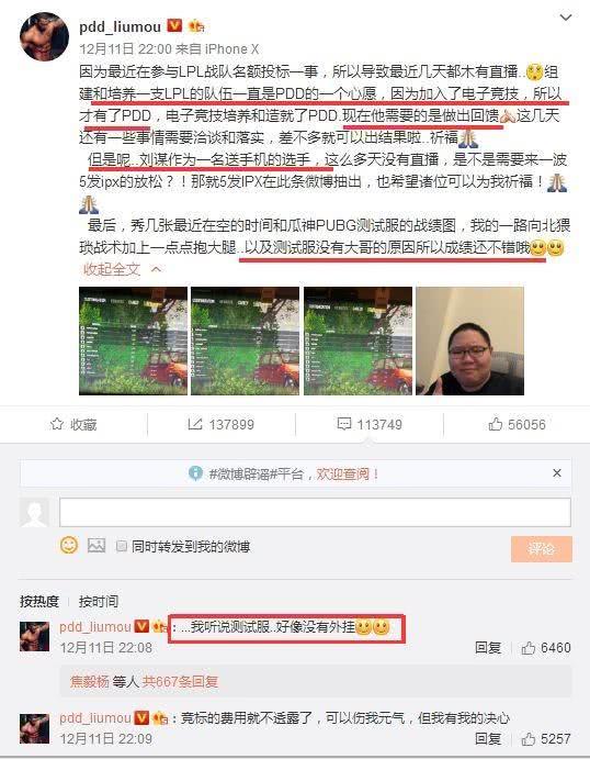 PDD在五五开停播第三天的时候发文阐述了停播原因,为了培养LPL队伍忙的不可开交。微博文案写的很巧妙也很在理,这让粉丝们也不得不再等他重新开播!