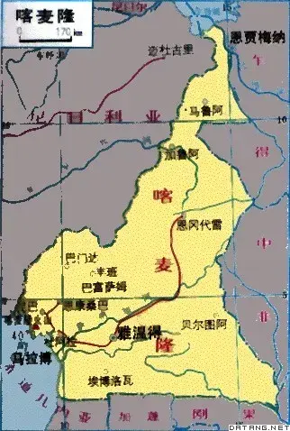 喀麦隆共和国位于非洲中西部,南与赤道几内亚、加蓬、刚果接壤,东邻乍得、中非,西部与尼日利亚交界,北隔乍得湖与尼日尔相望,西南濒临几内亚湾。海岸线长354公里。全境类似三角形,南部宽广,往北逐渐狭窄,乍得湖位于它的顶端。南北最长距离约1232公里,东西约720公里。