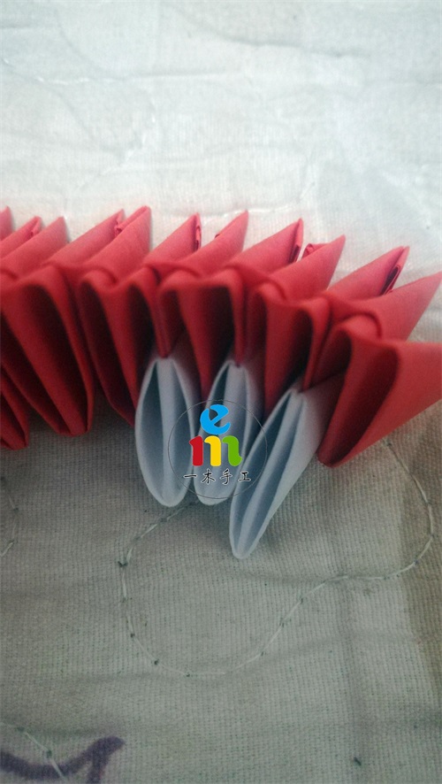 1.第一步先准备 红色三角插 190个 白色三角插140个(三角插的制作方法请看基础教程)