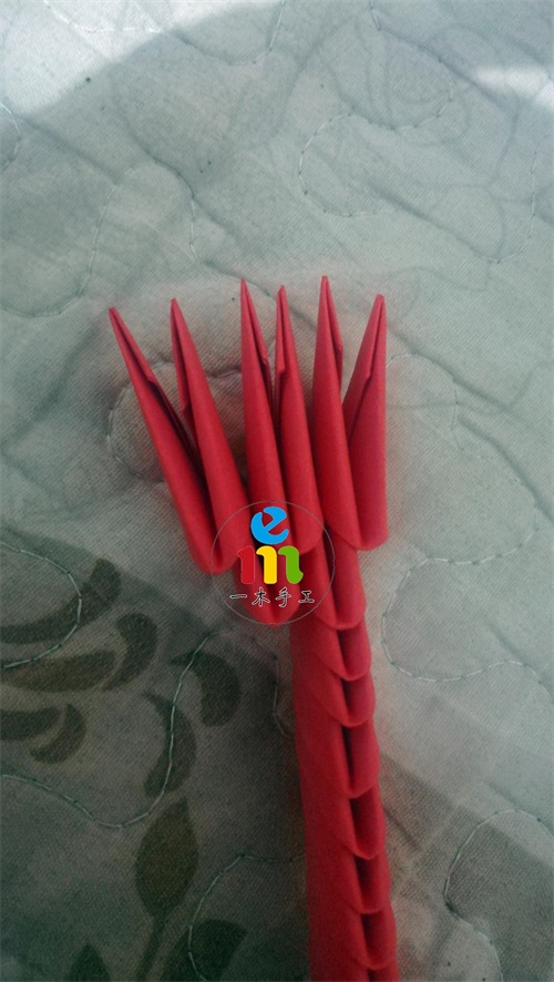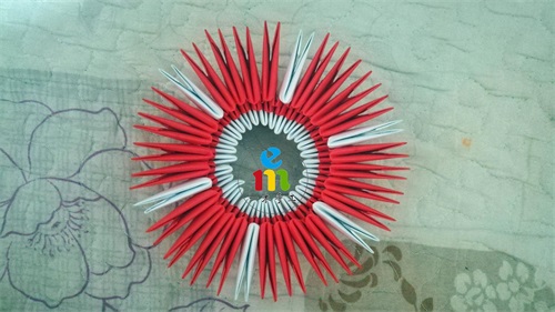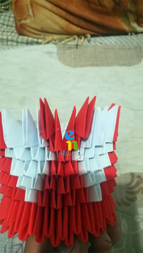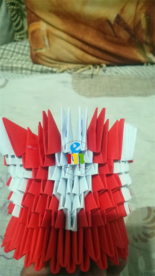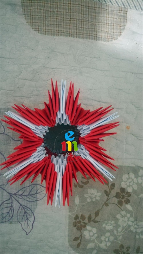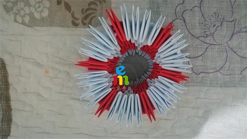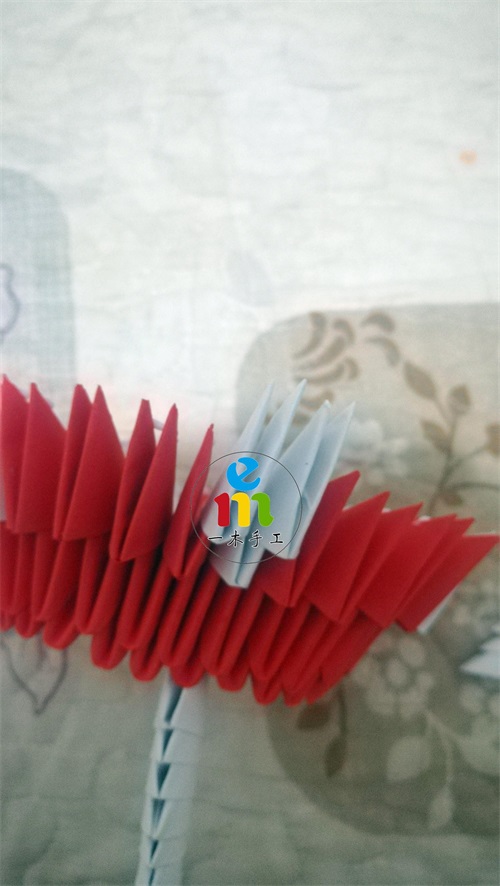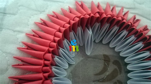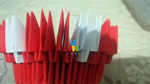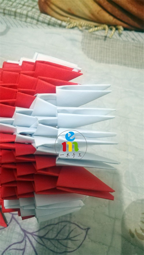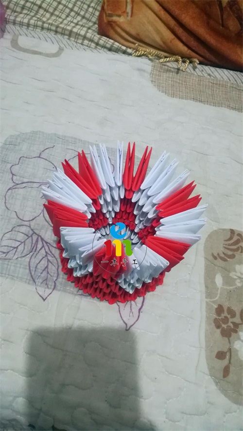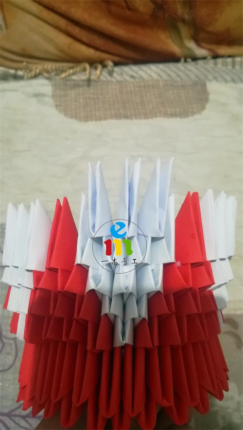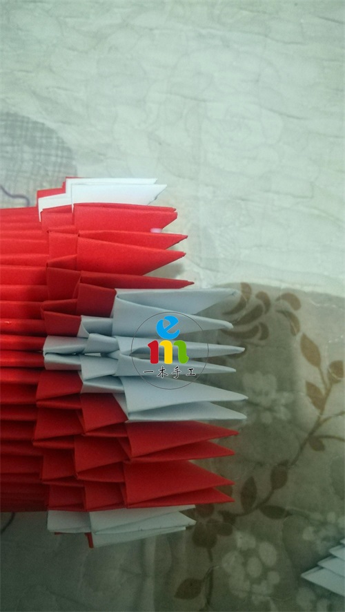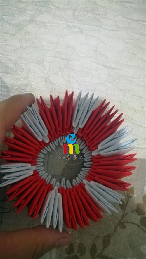 5.开始组合成圆形, 先将第二层红色正插1个 组合起来 ,然后再将底部反插一个白色。 组合完成 整理一下 这个是底部图