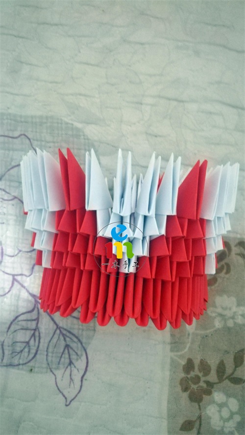 今天给大家图文形式的讲解一下手工DIY三角插折纸六瓣花篮成品制作教程