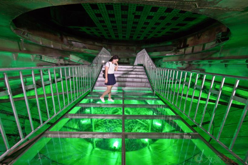 在101工号3楼锅底搭建了玻璃廊道,上下模拟核原料反映绿光,游客从锅底上方,穿行而过可身临其境的感受锅底近40年的沉积