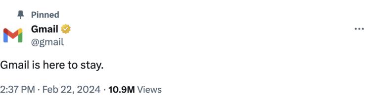 吓得 Gmail 赶紧在线置顶辟谣:假的。用户你别飞,Gmail 永相随。